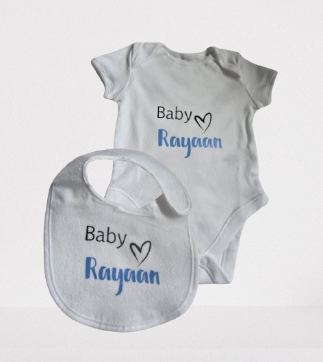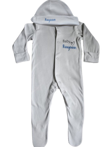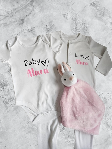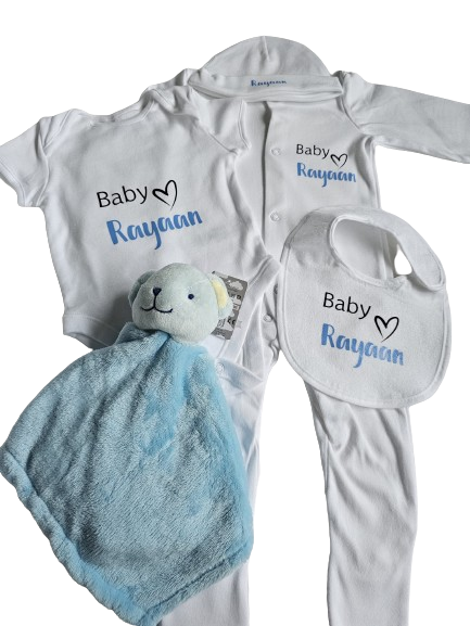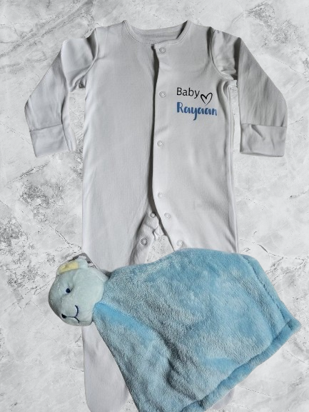 Personalised Full Set Baby Sleepsuit/Vest/Hat/Bib/Comforter- Baby Boy/Girl Gift